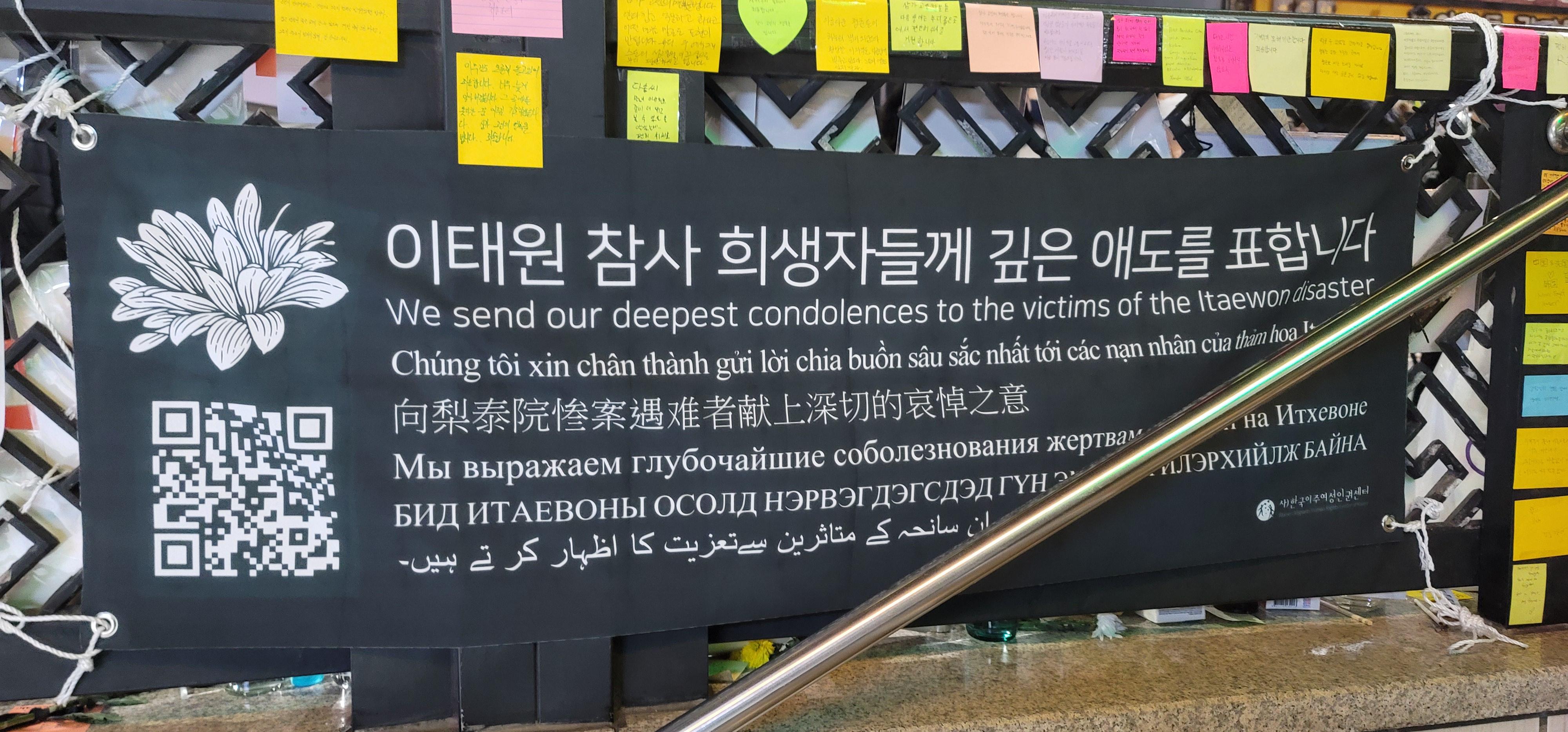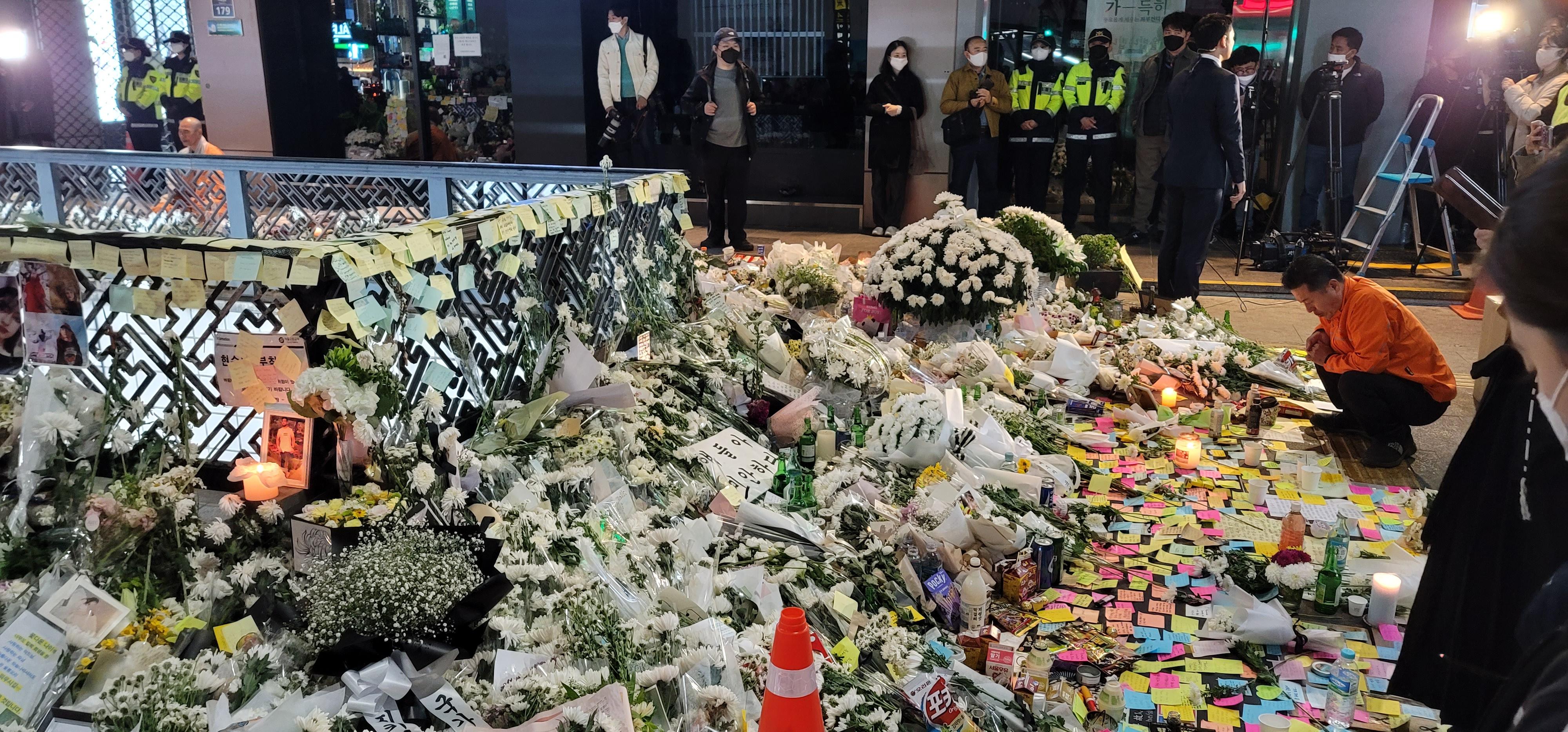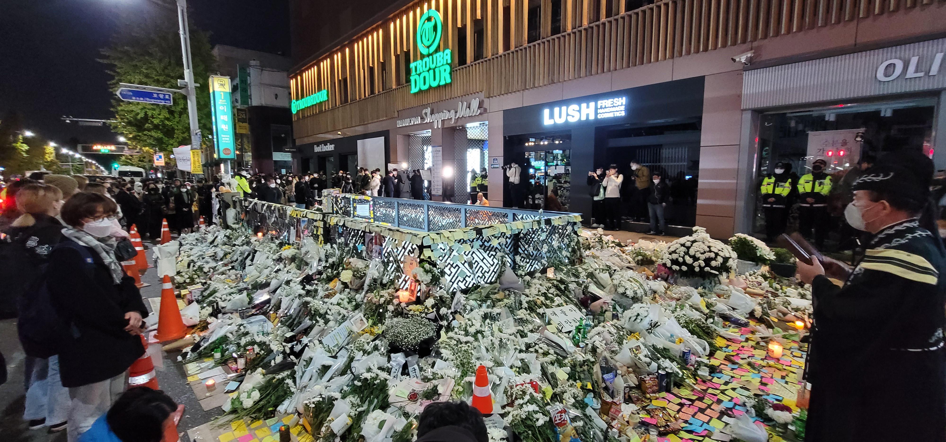 Two things that I haven’t personally seen anyone comment on is that there were two other factors that made the alley more dangerous than it needed to be. The clubs on that street sectioned off the sides for people to wait in line for their clubs, and there were at least 2 street-side booze dispensaries operating immediately prior to the crush. The one in front of the Emart24 looked like they were giving out shots. This isn’t to condemn them, but to just make note of other factors that may have contributed. One of the club’s bouncers became a hero later by pulling people out of the crush and into the club.