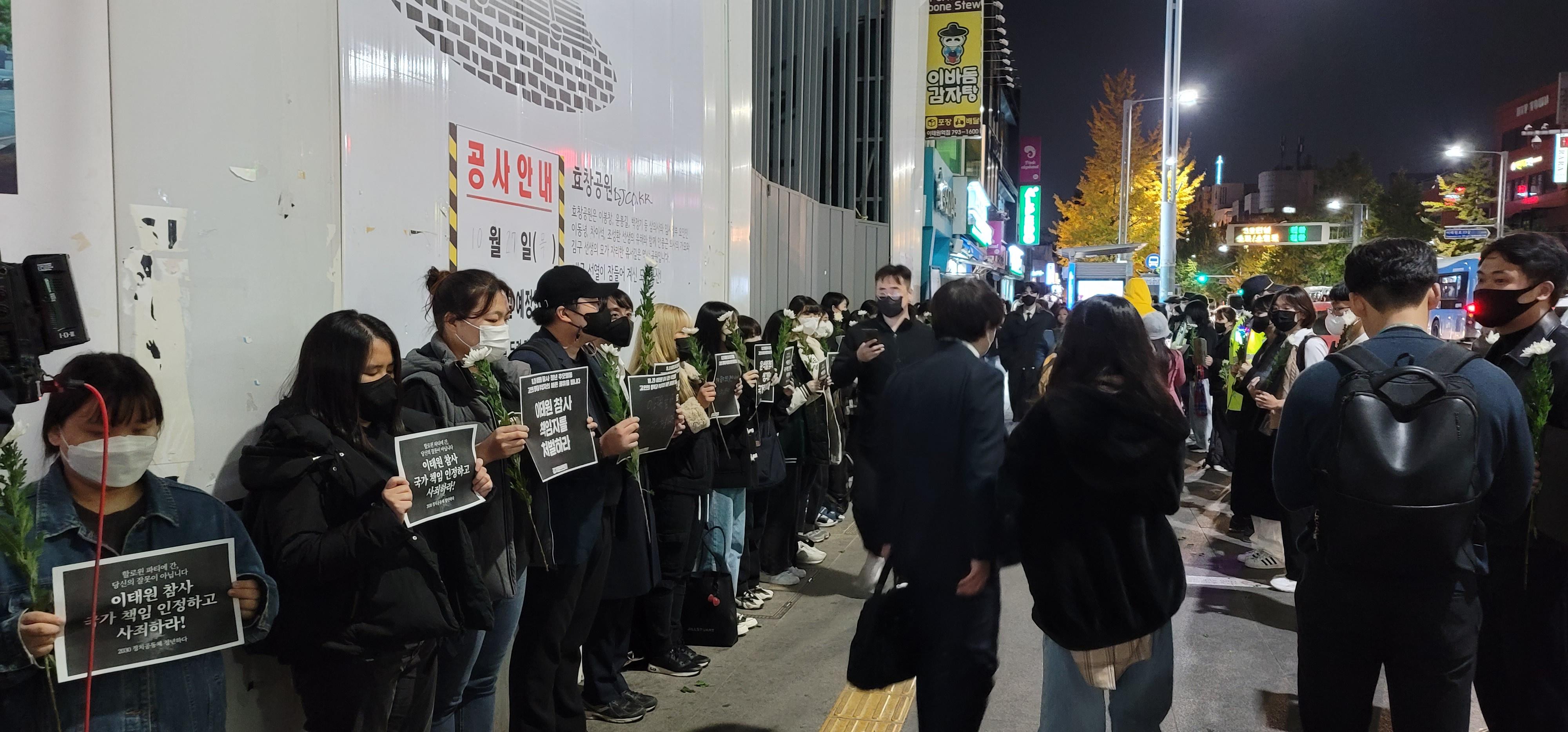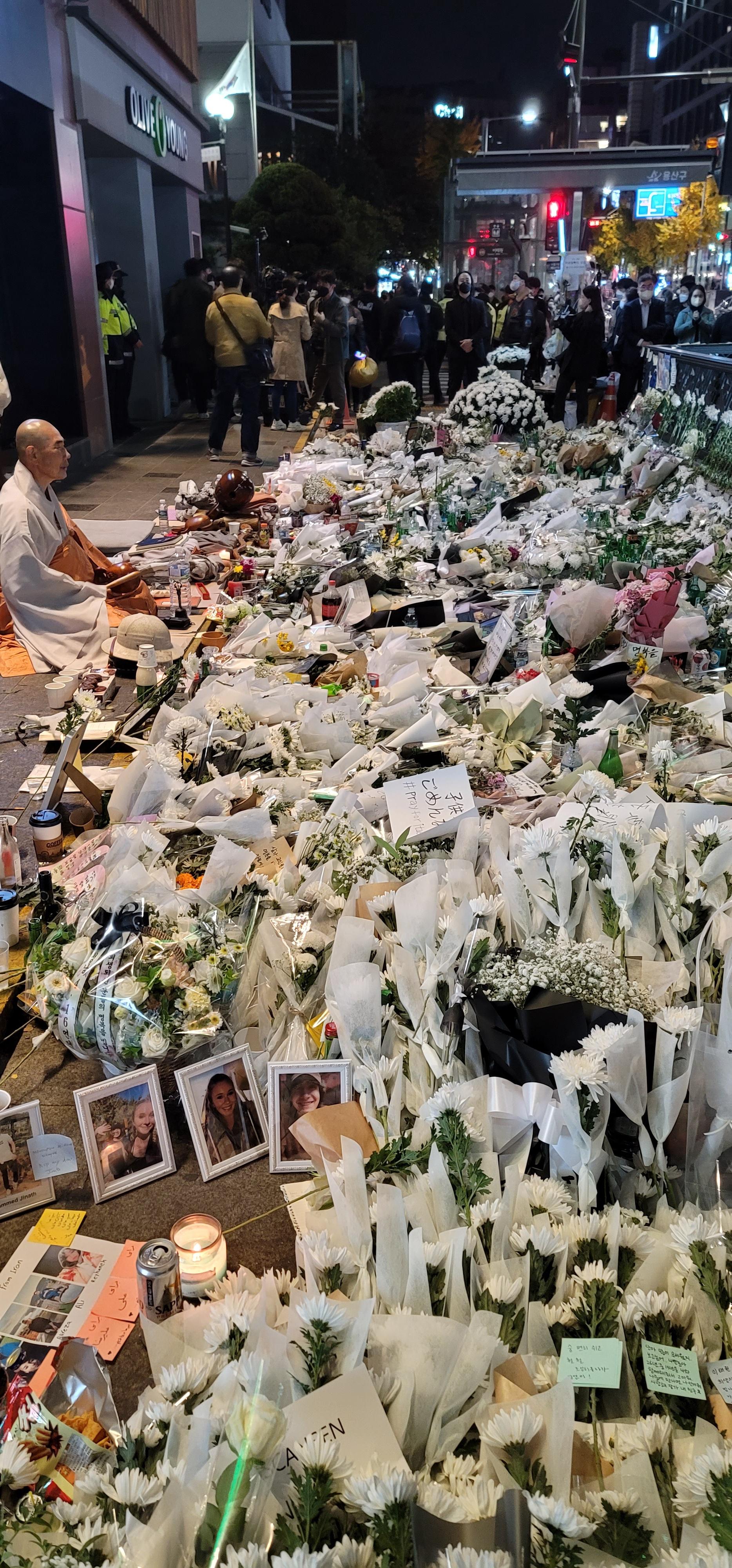 During previous Halloweens, there were cops at the intersection of the walking street that led into the alley to control the flow of traffic. However, for this Halloween, the now disgraced former president, Yoon Suk Yeol, had started a war on drugs, and so the only cops present were undercover and looking for drugs. After the tragedy, the cops actually tried to blame the deaths on drug usage and wanted to drug test the corpses. They even got warrants to search the victims’ bank accounts to look for drug payments. Concerned citizens had been calling the cops the entire night about how they were worried that someone might get hurt because there were simply too many people. But the cops didn’t show up until after the crush started killing people, arriving an hour and a half later. I could spend a lot of time raging against the incompetence of the police that night, but I will spare you. Most importantly though, the bereaved families have STILL not received justice yet.