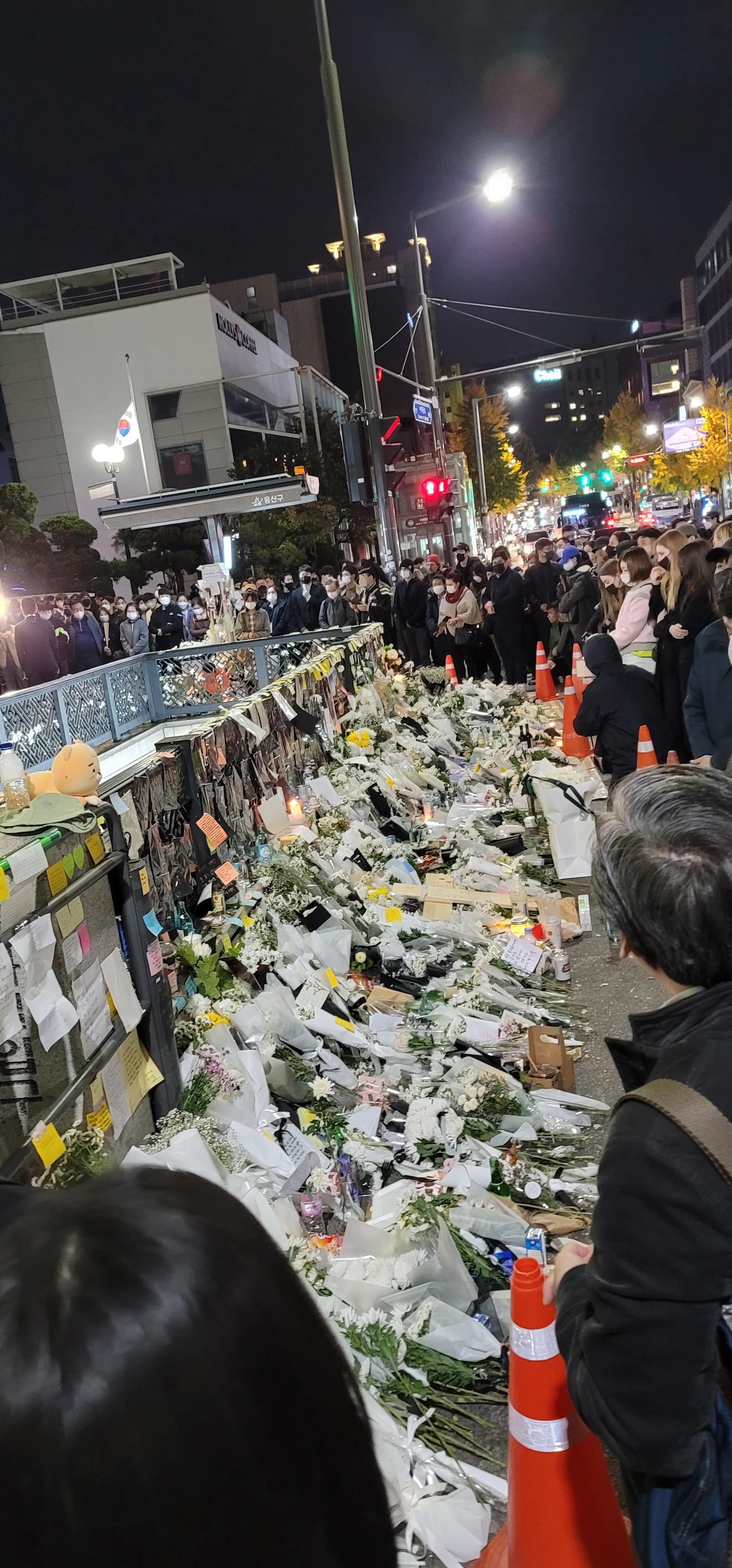 For the next two hours, I was drinking in front of a convenience store only about 130 meters away from the where the crush was occurring. The music and everyone’s combined voices were so loud that I simply had no idea that it was happening. It really cannot be understated how loud it was that night. If you tried talking to me from more than maybe two meters away, I wouldn’t have been able to hear you. However, after 2 hours, I went to get a kebab across the main street, and realized I was getting a lot of messages from friends asking if I was okay. I was very drunk at the time and had no idea what anyone was talking about, and the first thing most people thought was that there was a celebrity sighting in Itaewon. For a long time, all I could remember was me walking by the alley and a police officer telling me to go home. I did end up walking most of the 5.5km home, as it was impossible to use public transportation or get a taxi. I think what happened to me, though, is called dissociative amnesia. Now, I can sort of remember the bodies strewn along the road and the ambulances. I am still deeply upset with myself at how drunk I was that night. I think if I was sober, I could have at least helped perform CPR on someone. I don’t think this guilt will ever leave me, to be honest.